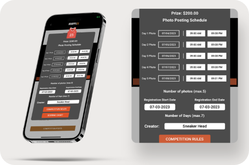 Competition Creation on the Hoopplex mobile app is a simple process that provides the licensed users with creative options to form a unique identity for their competition. From registrations, photo schedules, and select product listing etc., your competition catalog starts with the Competition Creation form. All Competitions are created on the Hoopplex mobile app.